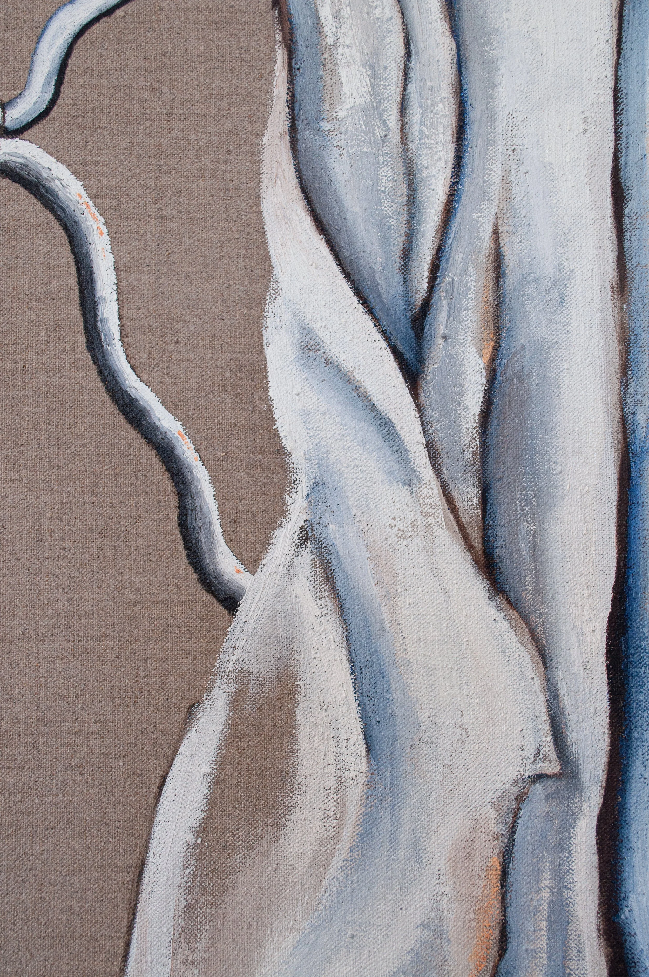 This experience shaped the direction of my painting. Unlike my other works, this one isn’t colorful. It’s painted in shades of grey, with glimpses of color peeking through the grey here and there, just like the inspiration that almost was.