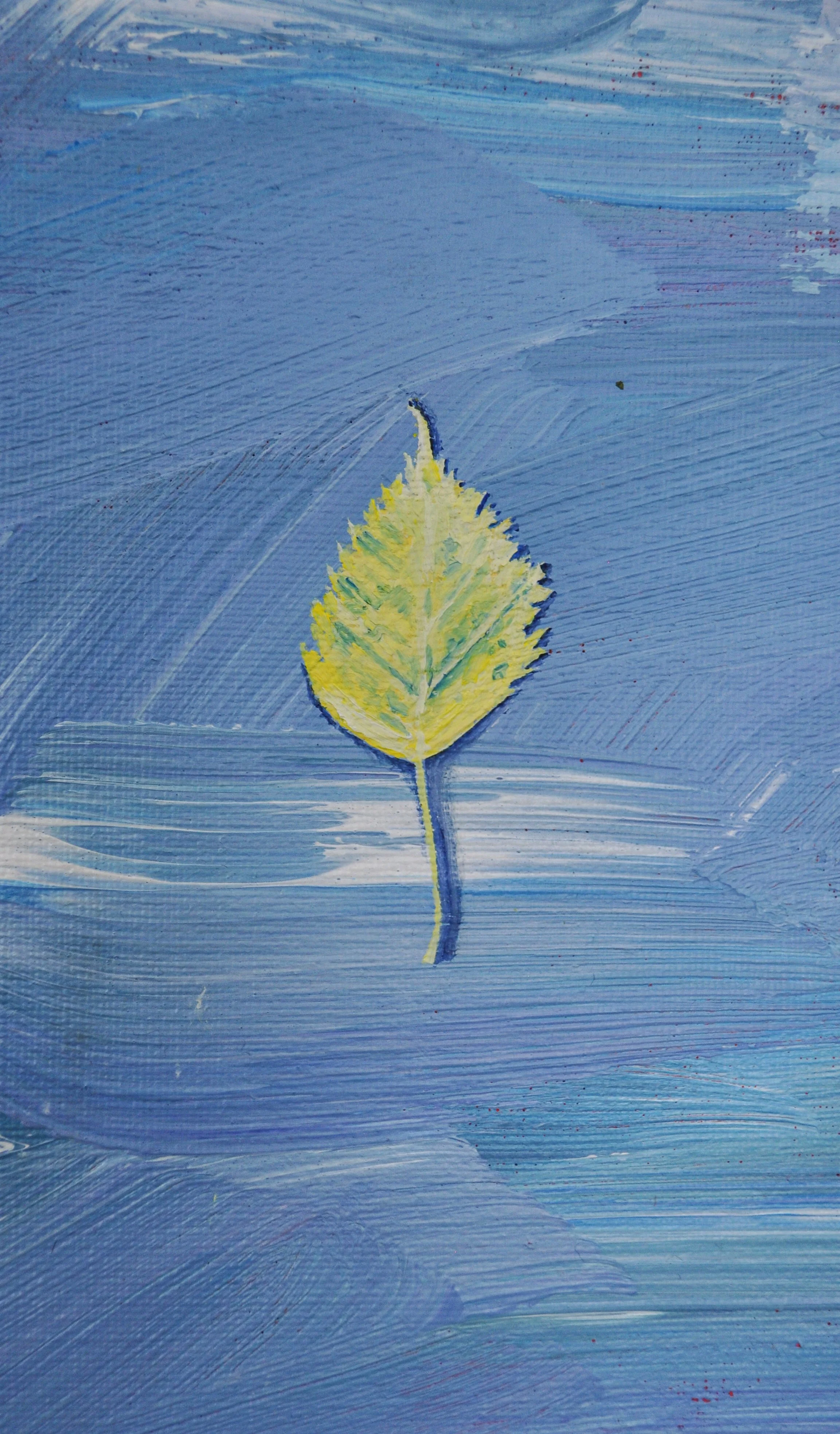 During a walk, I found these beautiful leaves and wanted to preserve their beauty by painting them. The landscape is one of the many pretty views we had along our bike trip.